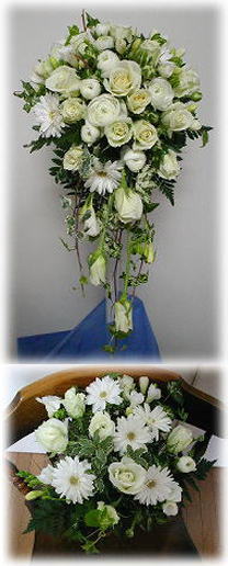 ◆キャスケードブーケ(12) カサブランカ・ティネケ・ スプレーバラ(スプレーウィット)・ アイビー・ナルコユリ ¥28.000 |