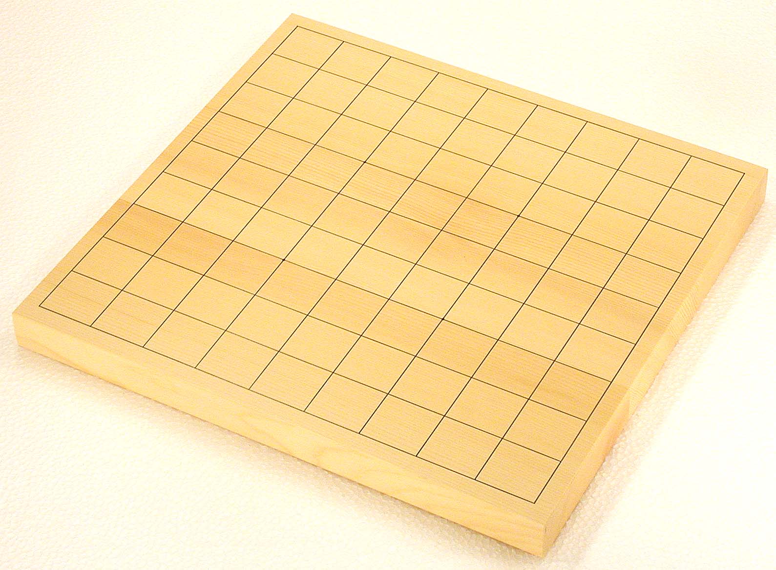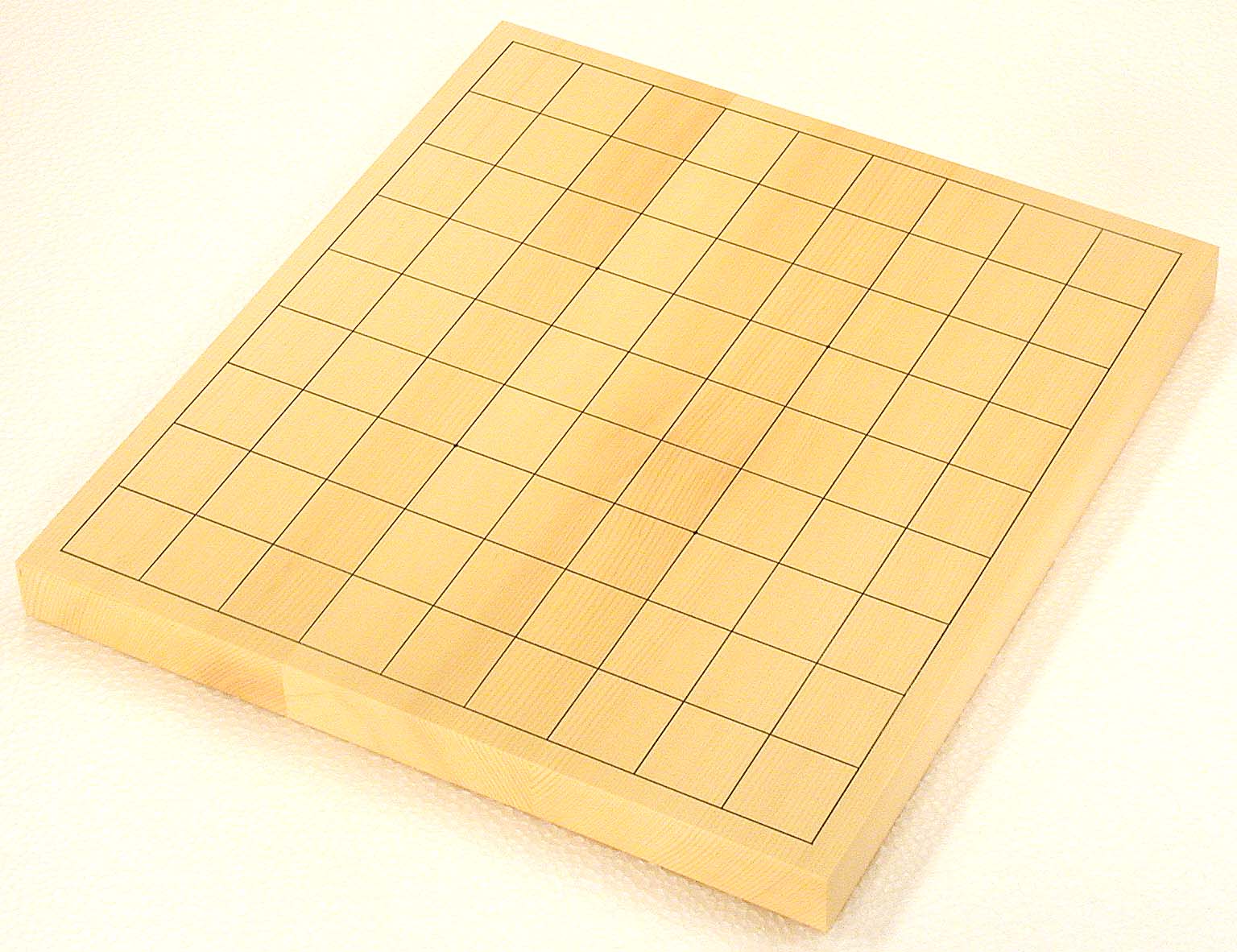 卓上将棋盤/日本産日向かや材/1寸柾目継ぎ(特上品) 細やかな木目の柾目継ぎ仕上げです。 ¥34,000(税込み) (写真内の 将棋盤の線 が点々と光っているのは、撮影用の照明ライトの反射です) |