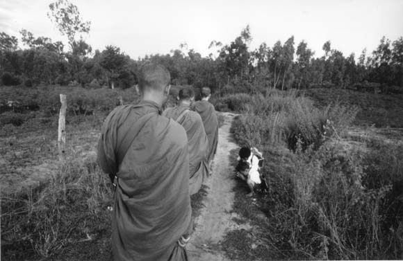 通学途中の子供たちも、僧侶とすれ違うときは…。