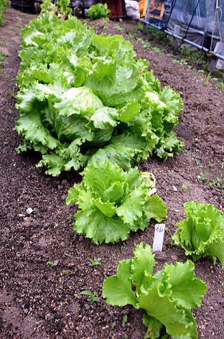 12月31日に種を蒔いて3月10日に移植したレタスの収穫は殆ど終わりましたが、5月上旬までビニールを掛けていましたので、葉が焼けてしまい半分は腐ってしまいました。1月31日に種を蒔いて3月30日に種を蒔いた分は順調に育っています。この時期のレタスが一番いいようです。2月28日に種を蒔いた苗は、ハウスで蒸らしてしまい殆どが駄目になってしまいましたが、今年も6月一杯は収穫できそうです。レタスは暑さに弱いので、来年は注意したいと思います。