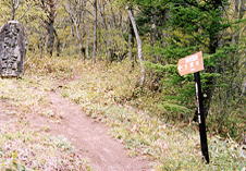 連休に、保福寺峠へ行ってみたら、青木村で立てたこの標識が立っていました。30山あれこれ(2)「信州上田近郊の里山歩き」に書いてあるように、このコースが歩かれるようになっている事は知っていましたので、前と様子が変わったかな?今はどうだろう、と歩いてみたくなりました。また、以前、入山、御鷹山、十観山と縦走した時は、保福寺峠東手前の林道から、尾根に出ていましたので、保福寺峠から二ツ石峰はまだ、歩いていません。保福寺峠から十観山までの今を知りたい、というわけで出発だ、このコースは5月までだと思うので・・・。しかし、このコースを歩くには、5時間はかかるし、ピストン出来ないので、車も大変。一人では心細いし。という訳で、全コースはまた秋にでも、だれかさそって歩こう、という訳で今回は、保福寺峠から、二ツ石峰〜入山手前の1549mまでこのコースを歩き、林道をゲートまで帰ってきて、車道を保福寺峠まで戻って来ました。保福寺峠からそこまで、2時間,帰りは1時間強かかりました。(2002、5、12)なお、このコース全体(保福寺峠〜十観山)は、2003年11月にHP「山岳巡礼」の根橋さんとごいっしょに歩く事ができました。