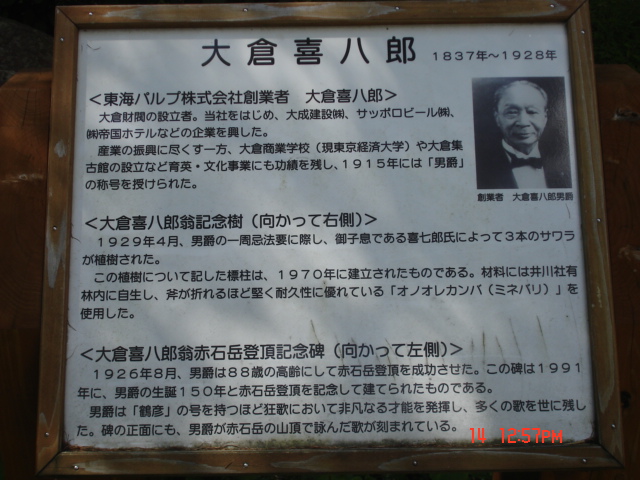 | 椹島に降り立ち、登りには急いでいて見れなかった、道端にある大倉喜八郎の歌碑などを見たりしてロッジに到着。どこかに大倉喜八郎は輿に担がれて登った、と書いたあったような気がするが、88歳では、鍛えた登山家でもない実業家が自分の足で登ったのではないだろう。乗車券をもらってしばらくヘタンとなって待っていたるうちにバスがやってきて、乗った。 帰り道、一昨日泊まった赤石温泉で風呂に入り、公衆電話から家に連絡した。(携帯はこの辺は全然使えないので)また、7時間かかって同じ道を帰った。途中、静清バイパスへ乗る手前でガソリンを満タンにしようとスタンドに入ったら、長野ナンバーを見られて、喜ばれて?カードが無くてもメンバーの値段で入れてくれたようで、親切にしてくれた。またいらっしゃいと言われ、静岡のスタンドに対するイメージが大分上がった。家に着いたのは10時半頃。慣れたせいか、夜道のせいか、行きよりも短く感じた。 今回は一人で登ったが、南北アルプスのあまり険しくない登山道なら、一人で歩いて山小屋に泊まったりするのも、秋などならいいな、と感じた。また日本の自然のすばらしさ、いとおしさ、というようなものも改めて感じられ、こういったもの全てを一瞬のうちにだめにしてしまうような核の大爆発を絶対に起こしてはいけないという気持ちがさらに強まってもきた。(2011、9、15) |