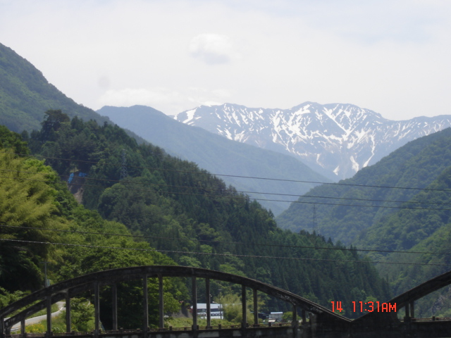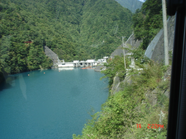 | これは、帰りに、上流の赤石ダムの付近をリムジンバスの車窓からとったものだが、道に沿った紅葉シーズンにはそういう目的でも使われているようだ。運転手が色々とガイド風でなく雑談風に説明してくれた。畑薙第一ダムから見える山は、上河内岳、茶臼岳、仁田岳、など去年の夏に弟と歩いた山々の稜線が高くに見えた。また、途中、聖岳の見える場所もあったり、赤石岳の山頂部が見える唯一の場所の道端に、「ライブカメラ」が設置されていて、静岡市のHPに赤石岳ライブカメラとして出ているそうだ。帰ってからネットを見てみると、ライブカメラの四季の良い写真なども載っていた。それは、ここの道端にあるカメラ映像という事なのだ。(なお調べてみたらこの赤石ダムは平成2年完成とあった。) 発電所などの説明では、大井川の全水力発電の合計が70万キロワットくらいで、「浜岡原発1基分」より少ないそうです、と言っていたが、それを言うなら「火力発電所1基分」と言うべきだろう。原発がすばらしく必要と言う刷り込みは色々な所で人々の頭にされているのだろう。 |