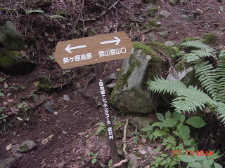 | 入ってしばらくすると,沢から左手の斜面に上がり,林道をあるきます。(沢ぞいは砂防堰堤で通れません)観光センターの隣あたりの林道から車で入った方が近いです。 |