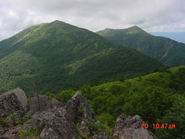 | 北には根子岳や四阿山,草津の方の山,東は嬬恋村から浅間隠山まで続く台地が広がっている。菅平の方も見えた。秋の天気がよい時など,展望も中々いい山だと思った。元来た道を戻った。帰り道,新鹿沢温泉に入って気持ちよく帰ってきた。天気のよい日に家族みんなでのんびりと登って温泉にでも入りたいような,明るく,登り易い山でした。(2005,8,20) |