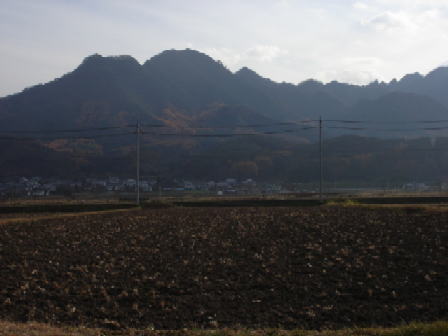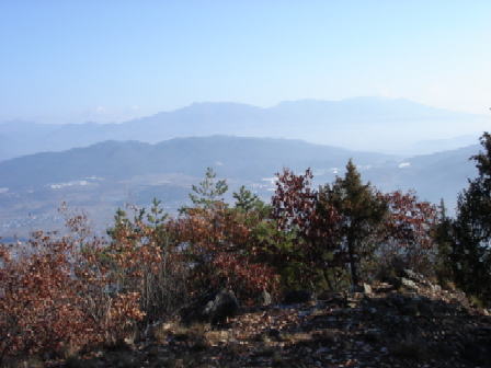 帰り道、今日歩いた尾根を振り返って、写真に撮った。塩田平から見える独鈷山のスカイラインはこの東尾根(正確には東北尾根)がよく見える。左側の一番高く見える丸い峰が安曽岡山、そのすぐ右の尖ったのが高ボッチそこからしばらく行ってちょっとふくらんでいるあたりが1112mそこからしばらく行って核心部の針峰群が見える。右端が山頂。 2:30頃帰宅。 (2005,11,26) |