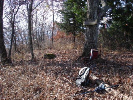 安曽岡山山頂に9:55着。ここは三角点より少し高いので1080m位か。一時間以上かかってしまった。ここからは登山道が無くなる。しかし今日は、葉が落ちていて、見通しが良くなっているので大分歩き易かった。とはいえ登山道のようにはいかない。ちょっと休憩してヤブ尾根に突入。下りはけっこう坂だ。安曽岡山と高ボッチの鞍部は二万五千図には東西に越す峠道があるが,もう道はヤブに埋もれてしまっている。でも,もし何かあったら、平井寺側が下り易いのでエスケープルートにしようと思う。鞍部から、高ボッチへの登りは、高い木々が生え、下草が少ない。 高ボッチの登りは、それほどの事はなく、頂上へ着く、ここも山城跡なのか多少平にならされている感じがあるがどうなのだろうか。ここは1104mだ。そこからちょっとした岩吊尾根があって南のピークに着く。10:30になっていた。ここまでは今年の六月に来ている。塩田側から塩田城や三十三番観音のある弘法山の尾根が突き上げてくる場所がこの高ボッチのピークになる。ここからしばらくが未体験区間である。 |