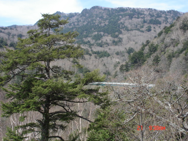 | 帰り道、ふと気づいたら「熊鈴」を落としてしまったのに気づく。道もはっきりしないので、また登るずくが出ず、そのまま下ってしまった。熊鈴を落としたのはこれで2回目だ。砂防堰堤付近まで下りてきたら、間近で鹿の鳴き声がした。しばらくしてまた一声。それに続いて、犬のような「ワウ」というような声が聞こえ、また何声か鹿が鳴いていた。狩猟シーズンでは無いし、犬?と思う。熊はあんな声かな?この山中は鹿のフン?だらけだったのでそうとう鹿が住んでいることは確かだ。 標高差が400m程度の軽い登山だったが、道が荒廃していて適度に不安感があり、面白かった。頂上付近は早春、中腹から麓は春の盛り、下界は晩春の明るい一日でした。 「熊鈴を落として今日もぶじ下山」(2006,5,21) |