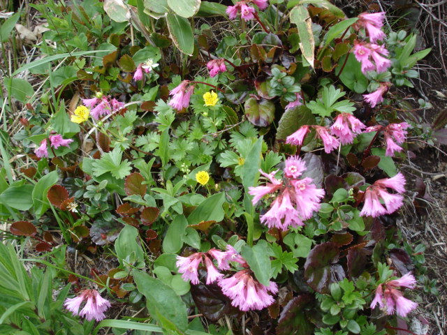 | 山道の所々にイワカガミや色々な種類の高原の花々が咲いていました。 |