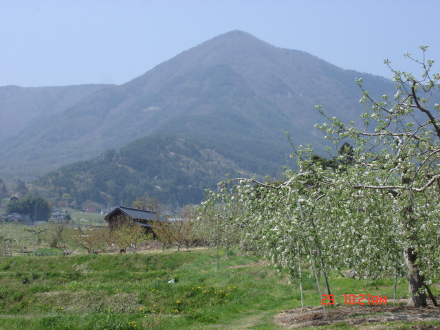 | 八頭山は大林山へ縦走していく山として良く色々な記録を見た事がある。今までどういう訳か登った事がなかった。休日でもあり天気も良く、八頭山へ登ることにする。上山田から四十八曲峠の方へ向かうと、もうりんごの花も咲き出して、美しくのどかな風景が広がっていた。四十八曲峠の方に向かうと、峠の麓は道の両脇に桜が美しく、こんな道はドライブしているだけでいいだろうなと思う。四十八曲峠は以前、何回も車では通った事がある。 | |