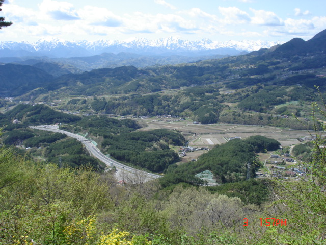 | 東山地区の端に青柳城址があることを知っていたので、寄っていくことにした。 | 左の入り口から、切り割り、段郭、など順番に現われて、それぞれに解説版がしっかりついていて詳しく見たりすると山城地形が頭に入るような城跡だった。ただ登山の後だったので、一番西の郭に到達するには疲れてしまい、じっくり読んだりはしなかった。後日また来ることもあるだろう。最後の西の郭跡には三角点もあり、高速道のパーキングが見え、高速を走るとき位置関係など良く分かるだろう。城址の駐車場付近の水道の水を飲んでみたらとても冷たくて消毒臭もなくうまい水でおどろいた。 今日久しぶりに登ってみて、四阿屋山はさすがに筑北地区の名山だと思った。(2008,5,3) |