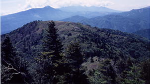 尾根へ出ると、茶臼山(美ヶ原南端)方面が見える。