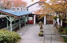 別所温泉には9:32に到着。写真は終点の別所温泉駅。駅前にタクシー営業所もあります。 |