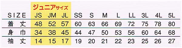 ジュニアサイズ JS〜JL