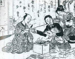 雲平が弟子入りした明治3年(旧暦)が暮れて、修行も2年目に入った。 長崎の正月は、久留米とは相当趣きを異にする。オランダ人や中国人が、祖国から持ってきた食文化をすっかり地元に溶け込ませているためだ。中国人の正月料理は、肉や魚をふんだんに使う。家族や親類が寄りあって、大皿の料理を分け合って食べる。食卓を挟んで、自国の言葉がすさまじいまでに行き交う。更に街に出て、爆竹を鳴らしながら踊る。何しろ、賑やかである。 長崎屋足袋所の正月も、久留米のそれとは大いに異なる。年が明けると、年数の少ない順に起き出して動き出した。番頭の幸六が、恵方の井戸から若水を汲み出して湯を沸かす。親方が出来上がった雑煮を神棚に供え、奥さんと弟子たちを従えて柏手を打つ。 雑煮の具は、唐人菜(青葉)・鰤・鶏肉・巻はんぺん・大根・里芋・椎茸・蒲鉾・するめなど。縁起を担いで種類を奇数使うのが常識である。出汁は、昆布と鰹節・醤油・酒を混ぜておすましとする。 食卓にはその他、紅白のなます・黒豆・ごまめ・数の子・紅さし南蛮漬け・寒天寄・紅白蒲鉾・煮しめなどが盛りつけられた。向こう側の皿には、ウラジロの上に塩鰯が並ぶ。お屠蘇が済んだところで、奥さんから弟子たちに、紙に包んだお小遣いが渡された。 正月2日は商い初め。夜明け前に起き出した弟子たちが、店の内外を掃き清める。親方は、番頭の幸六と一緒に、用意していた真新しい暖簾を店先に飾った。 「とーらご~」と、甲高い声が表通りから聞こえてきた。「とーらご」とは、なまこのこと。あちこちから出てきた主婦や弟子たちが、競って縁起もののとーらごを買い求めた。どの家も紙に包んだ銭を魚屋に渡した。これまた長崎ならではの正月の風習である。朝食が済むと、親方も番頭も弟子たちも、いっせいに初仕事にかかる。