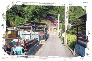 総代を先頭に、若い衆とカッパ姿の子供たちが続く。その後ろをお母さんや女の子たちがついて行く。行列は神社を一周して拝殿前に整列し、総代が祭文を読み上げて、さあ奉納演技の始まり始まり。村中の老若男女の前でまず青年が杖(棒)を持って踊る。そのあとが子供カッパのヘンチクリンな踊り。踊りというより4人のいたずら坊主が笛や太鼓も無視して遊んでいるといった感じ。それでも見物人は熱心に拍手を送っていた。