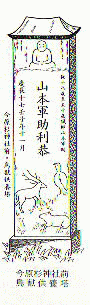 今回は、峠から半里ほど下った国道脇にひっそりと立つ石碑にまつわるお話。風化した碑の表面を透かして見れば、そこには「従十八歳至五十歳 山本軍助利恭 慶長十七年十一月」とある。また表面の上部には仏の像が彫られ、下部には鳥や猪、鹿が草むらで平和に生きている様子がバランスよく配置されている。