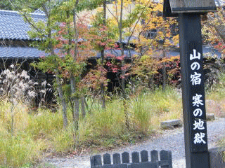 寒の地獄温泉は、長者原から牧ノ戸峠に向かってすぐのところにある。いかにも伝統ある湯治の宿の雰囲気を持っている。
