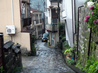 湯平を訪ねたのは梅雨も終わりの頃だった。駐車場についた途端、耳も劈くような雷がなり響き、叩きつける雨で温泉街の坂道は急流に変じた。500bにも伸びる石畳をゆったり散策して、五つもある共同浴場をハシゴして、それから名物だご汁を食って、なんて計画も吹っ飛んでしまった。