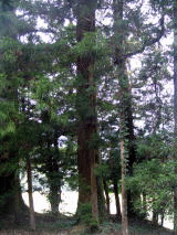 お話しを聞かせてくれた園田さんは、80年前に孫太郎屋敷付近で生まれ育った、根っからの土地の人だそうな。旦那さんといっしょに、毎朝毎晩杉神社や観音堂を見守ってこられたとか。「私がこまか頃、家の裏にそれは大きな杉の切り株が残っとりました。おそらく孫太郎さんが伐った大杉でしょうね」。伝説の根拠はしっかり存在していたのだ。写真は、杉神社の杉の古木群
