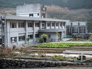 旧浮羽町の中心部から隈上川に沿って登って行くと、カッコいい白亜の建物が見えてくる。うきは市立姫治小学校の校舎である。昭和26年まで「姫春村立」だった。村全体が山また山で、川に沿って民家が立つ典型的な山村。