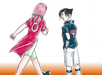 | 必然的日常 遂げなくてはならない目的をもったサスケは、譲れないものを抱えてたりする。 いかに自分を鍛えるか、そのことが頭の中の大半を占めていたりする。 他の事に構っている場合ではないと思っていたりもする。 ただやっぱり、勿論、好意をもっている相手のことなので。 優しく応えてやりたい想いも持ってはいたりする。 しかし、いくら誘いに乗りたいという思いがあったとして、 だからといって、それをおおっぴらにできるほど素直でもなく、大人でもなく。 そして、 目的を忘れることもできず。 結局は、冷たく突き放すことしかできなかったりするのが常だったので。 そして今日も。 好きな人の側にいたくて、そのチャンスをつかもうとして、 カカシの口から解散が告げられた後サクラは即座に行動を起こした。 好きな人の誘いに乗りたくて、でも自分にはしなくてはならないことがあって、 声を掛けられるのをある意味恐れていたサスケも即座に行動を起こした。 今日は僅差でサスケに軍配が上がった。 心の何処かで残念な気持ちを持ちつつ、サスケは後ろ髪を惹かれる思いでその場を後にする。 大きな落胆を隠すことなく落ち込んだサクラも、声を掛けてくるナルトを後にその場を離れた。 いつもの風景だった。 彼等の担当上忍であるカカシが、 まったくアイツ等は・・・ などと呆れたような、それでいて優しい笑みを浮かべるほどに、いつもの風景ではあった。 ちょっと通りかかっただけのメガネの少年が、この一部始終を見ていなければ。 いつもの風景が、変わった。 サスケがそれに気付いたのは、遅かった。 いつも通りだと思っていた任務終了後。 サクラが向かった先は、自分ではなかった。 いつもいつも、逃げるようにその場を去っていた為、まったく気付かなかった。 サクラの向かった先。 「おい、ウスラトンカチ。アイツ何モンだ。」 サスケが凝視したその先にいたのは メガネをかけて、ニヤつきながら(←サスケの主観による描写) 自分に向かってくるサクラに目を向けている男。 「知らねーってばよ。サクラちゃんに聞いても教えてくれないしよ・・・。 はぁ・・・。もう1週間だってばよ・・・。」 ナルトもどこか納得できない様子でサクラの行方を見つめている。 サクラが男のもとに辿りつき、こちらを振り返って手を振った。 そのサクラの笑顔に一瞬見惚れつつ、 聞き捨てならないことを聞かされてサスケは珍しく慌てる。 「1週間!?」 「あれ、お前ってば知らなかったのか? あいつ1週間前から毎日サクラちゃんを迎えにきてるんだってばよ。」 そこに彼等の上司、腐っても上忍のカカシがのん気な声を掛けてきた。 「あー・・・アレはお前等の先輩よ。」 「・・・先輩、だと?」 「そー。お前等より、いくつ上だったかなー。とにかく先輩。下忍だしな。」 「・・・その『先輩』が、サクラに何の用があるってんだ・・・。」 カカシの説明ともつかない説明を聞きながら、サスケはその目付きを険しくする。 いかに自分を鍛えるか、とか。 他の事に構っている場合ではない、とか。 あれだけ頭にこびり付いていた文句も、 今や念頭からすっかり消えさっていたし。 譲れないと思うものが、あっさりサクラに変わっていた。 「あの様子はどー見ても、サクラの方が彼に用があるって感じだと思うがなー。」 カカシのそんな呟きも、既に頭に血が上ったサスケの耳には届かない。 「今日は、彼、居なくなってなかったね?」 「そうですね・・・。」 「良かったの?」 「・・・はい!今の私は、もっと自分を磨かなきゃ! サスケ君から追いかけてもらえる女の子にならなきゃダメなんです!」 サスケ君は、追いかけたりしないだろーな・・・と内心冷静に思いつつ、 それでもサクラはそれを夢見て自分を奮い立たせる。 サスケが心の中で、とっくに自分を追いかけていることも知らずに。 「だから、カブトさん!今日もよろしくお願いしますね!」 「うーん。僕はいいんだけどね・・・。」 カブトはチラリと背後に意識を飛ばしながら、サクラに目を向けた。 「カブトさん、薬草の知識すごく豊富で専門的なんだもん。 私、今そういうことすごく勉強したいんです。」 サクラの視線は、その思いの深さを語っている。 カブトはなんとなく想像できた。 それはきっと、少女自身と・・・ あの、少年のために。 「そういうことなら、遠慮なく、しごいてあげようかな?」 カブトはメガネを指で押し上げて掛け直し、隣りを歩く少女に向かって笑いかけた。 その後の少女の反応を確信しながら。 そして少女は、確信通りに。 カブトにニコリと笑顔を返し、よろしくお願いします!と声をあげる。 笑顔で楽しそうに語り合いながら並んで歩く男と女。 側から見れば、そう。 イイ感じの2人だったりする。 例えカブトが、「そう見えるように」振舞っていなくても。 ・・・頭に血が上った状態でなら、それ以上の2人に見えたりもした。 任務後、サスケがサクラと2人で歩いてい