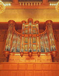 III.Recit Expressif C-a''' Quintaton 16' Cor de nuit 8' Viole 8' Voix celeste 8' Gemshorn 4' Flute a bec 2' Nasard 2 2/3' Piccolo 1' Cornet V (ab a) Cymbale V Basson 16' Trompette harm. 8' Clairon 4' Basson hautbois 8' Voix humaine 8' Tremulant |