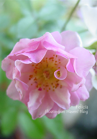 小さな花の咲くバラはどうしても見逃せません。このうすいピンク色が満開になると、幸せな気分になれます。