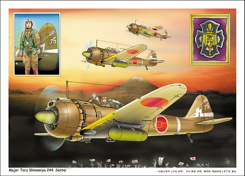 | ■ モデルアート3月号 04.1.24 このたび発売の雑誌『モデルアート 3月号』に244戦隊が特集されています。ファンの立場としても嬉しいことです。 24号機の初期の迷彩を再現した作品なども初めて見ましたが、これがプロの技というものなのでしょう。当方、模型には疎いので、とにかく驚きました。 皆さまにも、ご一見をお勧めします。 | ![]() |