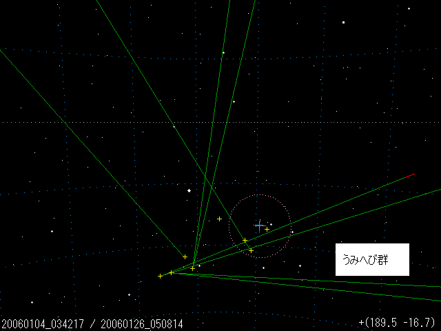 これらの流星は、東京都のSonotaCo氏もTVで撮影しています。また、埼玉県の野本氏のTVでも撮影されています。さらに、masuzawa氏もTVで撮影しています。さらに、新潟県のぷる氏も石川県の室石氏もTVで撮影しています。また、ITO氏もTVで撮影しています。さらに、大阪府の上田氏も山口県のしゃあ氏も撮影しています。これらの人のデータもとに軌道計算(UFOrbit017)をしました。上記各氏からは、貴重なデータを活用させて頂きました。群名の所の☆がある流星は、類似軌道が1個以上あるものですが、群としては不確かなものです。SonotaCo氏のUFOCaptureのおかげでたくさんの軌道計算が簡単にできるようになりました。今月は、しぶんぎ群の同時流星がたくさん観測され、軌道もたくさん求められました。
