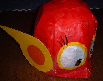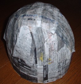 パーマンマスクは市販されていませんが、娘にせがまれ、自分で作ってみました。 用意するもの ・厚紙40cm×55cm ・新聞紙 ・白い紙 ・絵の具 ・筆 ・ホッチキス ・のり(チューブのり) ・木工用ボンド ・ラッカー(スプレー) 1.厚紙を細長く切る。 A)4cm×60cmを1つ(長さが足りないので継ぎ足す) B)3cm×46cmを4つ ![]() 2.厚紙でマスクの骨組みを作る。 ホッチキスを使って、Aを輪にして、Aの輪からBを米字に交差させて天井を作る。 ![]() 3.のりを水のに溶かし、溶液を作る。 4.新聞紙を切って紙片を作る。 ![]() 5.新聞紙片をのり溶液に浸し、骨組みに張っていく。 骨組みのうら・おもてに張る。 ![]() 6.白い紙を切って紙片を作る。 ![]() 7.白紙片をのり溶液に浸し、骨組みに張っていく。 おもてのみに張る。 ![]() 8.のりが乾くまで待つ。 9.耳の部分厚紙から切り抜く。 ![]() 10.耳の部分の色を塗る。 ![]() 11.頭の部分が乾いたら絵の具で色を塗る。 12.目の部分をくりぬく。 13.絵の具が乾いたら、耳の部分を木工用ボンドでつける。 ![]() 14.ラッカーをスプレーして出来上がり。 ![]() |