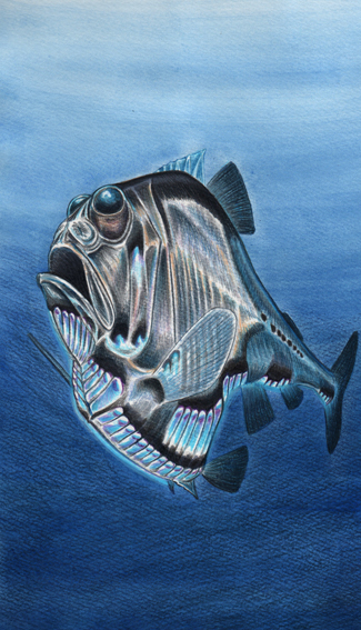 言い換えればまあ、その限界を突破するのがイラスト図鑑、というわけですね。そういうわけで今回の本ではメジャーな種類も入っていますが、基本、マイナーで、この機を逃したらもう紹介できないだろうものも含めて描きました。また。あえて付け加えるのなら、こうでもしないと深海生物の広い紹介ができない理由は、水が不透明な物体であることに原因があること、そこに注意するべきでしょう。私たちはプールや海を青く描くのにも関わらず、水が不透明な物体であることを忘れがちです。