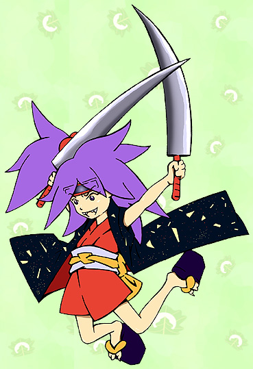 2004年5月のトップを飾ったわらしちゃんで、端午の節句バージョン。背景は柏餅。端午の節句ということで戦闘バージョンの姿です。髪の毛はヤマンバのごとく、いつもよりも爆発ぎみ。額にはヨロイらしきもの。
