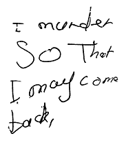 ●第4の紙片 この誤字だらけのなぐり書きを警察は悪質ないたずらだと考えた。 |