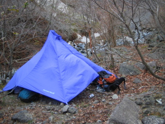 | 杉峠へはなだらかの後に急下降 | 鉱山跡にて鍋宴会 このあと酔っ払いと化す |