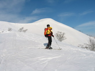 | 宴会にはまだ早いので頂上周辺で少し遊ぶ事にした^^ あたりを滑降したり、ビーコンで宝探しゲームをしたりして遊ぶ^^ 風も強くなく気温もプラスでとても2月とは思えないのんびりムード。 宴会でちゃんこ鍋を楽しんだら、こんどは午後の遊びタイム^^ 今度は北面の大日谷で遊ぶ。パフパフまでもいかないまでもかなりの雪質でとても楽しい^^ 谷が狭まってきたところで滑降をやめ再びシールをはって登り返す。 頂上まで戻ってきたところで残念ながらタイムアウト。 シールを剥がして下り開始。 今日は他にもたくさんの人があり路面はだいぶ荒れている。 滑降も少しは慣れてきてコケる回数もだんだん減ってきたのでうれしい^^ しかし、こまめに変わる雪質にバランスをとるのがまだまだ経験が必要だ。 前大日は階段登行で登り再び滑降で下る。 前を滑るかっきーがつんのめって顔からコケたので「イェーイ」と笑ってると 僕も同じ場所でつんのめって顔面制動^-^; まだまだ、急に重くなる雪質に対応できてない・・・ 高鷲スノーパークの頂上レストランが近づいてくると、そろそろ到着。 ゲレンデに飛び出て、そのままダイナランドスキー場に戻る。 今回はお天気にも恵まれてとても楽しい山行が楽しめた^^ 最後にスキー客だらけのゲレンデを滑り降りて終了。。 今回お初でしたTOMYさんをはじめ、かっきー、こてっちゃんどうもありがとう^^ 楽しい思い出がまた出来ました^-^ |