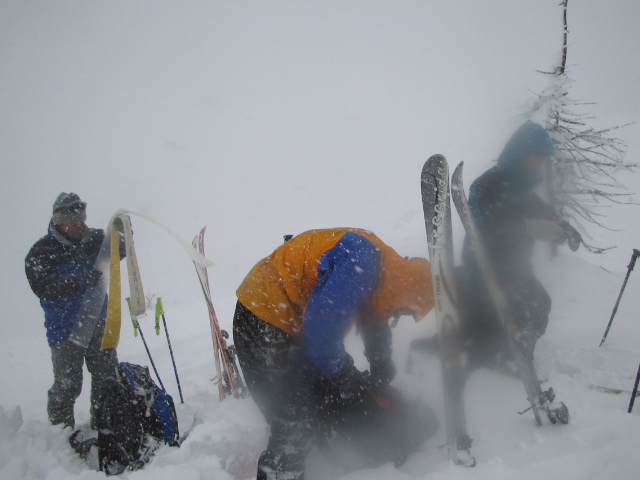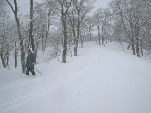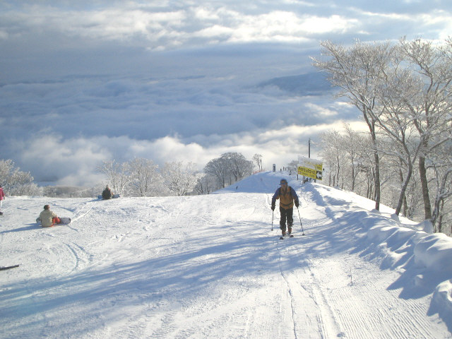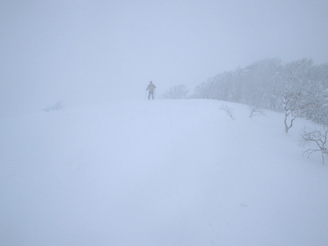 | 今シーズン、山スキー1発目はウォーミングアップを兼ねてお手軽な大日ヶ岳に行く事にした。 早朝、麓のダイナランドスキー場に到着。下界の雨はここでは雪に変わっていた。 駐車場にクルマを止めて夜が明けるまで少し仮眠をとることにする。 明るくなる頃には雪もやみ天候も回復してきた。βライナーでラクラク高度を稼ぐ。 βライナーを降りるとネットで隔ててすぐ横が高鷲スノーパークのゲレンデになっている。 スキーにシールを貼り付け出発準備オッケー。 すこしの間、高鷲SPのゲレンデを登っていく。適当なところで左手の尾根にあがる。 この頃になると晴れ間もでてきて日が差してくる。 今日は午後から冬型が強まり天候は悪化するようだ。今のうちに急ごう。 昨夜からの雪で新雪が積もっている。たいしたラッセルではないがやはり先頭はしんどい。 みんな、何気に先頭を譲り合いながら進んでいく。 前大日を過ぎると少し滑り下り、登り返すとほどなく大日ヶ岳の頂上だ。 まだ積雪は少ないようで頂上の標識は大日ヶ岳の大の部分が見えている。 さっそく宴会開始。滑る事も忘れてひたすら鍋をつつく。 しばらくすると風向きが変わり急激に天候が悪化してきた。天気予報は的中したようだ。 この天気じゃ撤退しかないと判断。風雪の中、撤収開始。 シールをはずし、滑降モードにチェンジ。 景色は真っ白、トレースも消えている。 コンパスとガスの切れ目にうっすら見える地形をたよりに滑降開始。 高度を下げるほど天候は回復してきて、スキー場が見えてくるとホッと一息。 最後は高鷲SPのゲレンデに飛び出た。 山スキー1発目としては消化不良な1日だったが、天気が悪けりゃしょうがない。 それなりに楽しめたので良しとしよう。 |