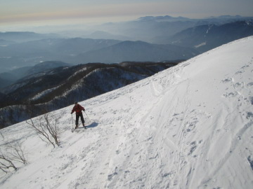 | まっちゃんとゲレンデでスキー特訓をすることになった! 諸々の事情で行き先は高鷲スノーパークに決定。 せっかく高鷲まで行くので大日ヶ岳を往復する。ゲレンデTOPからあっという間に頂上へ。 大日ヶ岳(1709m)の頂上は360度の大展望☆ 北アルプスや中央アルプス、白山・御嶽山がすっきりと見渡せる。 少しだけ大日谷に滑り込んでみると雪質は最高ではないが最低でもなかった。 シールを貼って頂上にもどりだらだらとパンを食べたり寝転んだりする。 かます谷にも滑りこもうかと覗き込むが登り返すのがしんどそうなのでやめる。 結局来た道を滑って高鷲スノーパークに戻り終了。 あとはひたすらゲレンデでスキーの特訓でした。 |