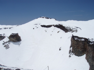 | 頂上は遥か彼方に遠ざかる・・ | この景色を見ながら滑るのが富士山の醍醐味 |