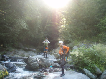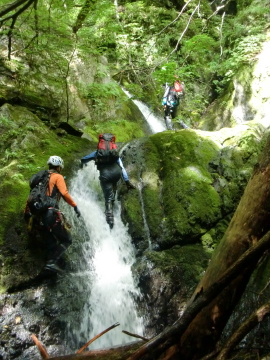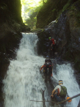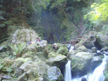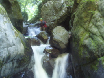 | 登山大系いわく強烈なゴルジュ | 水線を楽しく通過 |