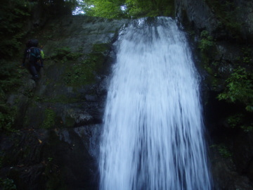 | 5mナメ滝は左壁から | この5m滝は左巻き |