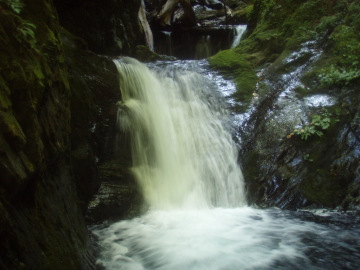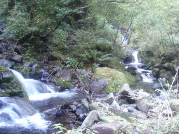 | 3m滝は右壁から | 谷は左に90度まがる |