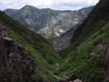| ガンガラシバナが近づいてくる | 二股より右方ルンゼを眺める |
