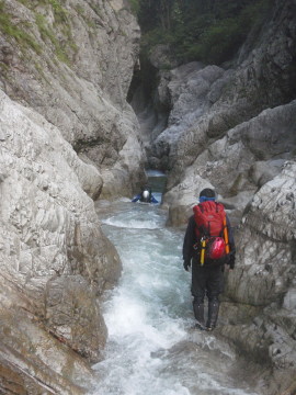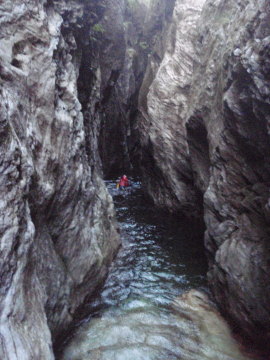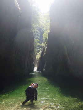 | CS7m滝は左岸の隙間から降りる | 25m滝は懸垂 |
