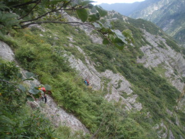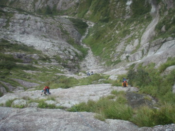 | 8P目トラバース | 大滝落ち口(終了点)は混雑 |
