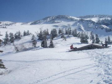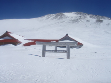 | ようやく室堂に到着したようだ。 さすが霊峰白山だけあって鳥居もでっかい。 ここから御前峰までの斜面はほぼウインドクラスト状態。クトーをガシガシ食い込ませながら登って行く。 頂上直下の急斜面を登り切り御前峰(2702.2m)に到着。白山神社の奥宮にお参りし、素晴らしい展望を楽しむ。 いつの間にか風もやんで春山ののんびりした雰囲気になる。頂上からの展望をあーだこーだと言いながらまったり。 そうこうしてる間にどんどん登山者があがってくるのが見えたので室堂まで降りてからランチにすることに。 まずは頂上から急斜面をひと滑り。すぐにガリガリゾーンに突入。クラスト斜面をガリガリ言わせながら滑り降りる。 あっという間に室堂に到着。腰をおろしてパンをかじる。すると突然声をかけられてびっくり。 誰かと思ったらobaさんだった。ご無沙汰ですっ。 matumuraさんやYAMADAさんにokadaさんも一緒とのこと。みなさんとは久しぶりの再会でした。 ひと通り挨拶を済ますと頂上に向かって歩いていかれた。 では我々も下りにかかるとしよう。雪の状態も悪くないので帰りは別当谷経由で下ることにする。 まずはドロップ地の黒ボコ岩を目指す。初めてだがすぐに黒ボコ岩を発見。まさに黒くてボコボコした岩だった。 黒ボコ岩から別当谷を見下ろすと適度な斜面で楽しそう。 まずは僕から滑り込む。雪もいい具合に緩んでいて快適に滑り降りていける。 下に行くほど小石が出てきて時々ガリっと踏んでしまう。だるるは今日卸したてのスキー板なので慎重だ。 あまり下り過ぎると砂防新道への復帰が面倒くさそうなのでさっさと別当谷に見切りをつける。(実際はもう少し滑れたようだが) トラバース気味に砂防新道に戻るとちょうど甚之助避難小屋のところだった。 そこから下は気温上昇でグサグサになった雪に苦労しながら滑り降りていく。 中飯場から下は滑れそうにないので途中から別当出合に続く林道に逃げた。 除雪前なのを期待して滑っていくが途中で除雪作業の重機と遭遇。そこからは歩きになってしまった。残念。 別当出合まで戻り、デポしていたスニーカーに履き替える。 同じく林道経由で降りてきた地元の単独スキーヤーもスニーカーをデポしていた。みな考えることは同じだ。 だるる氏が単独行の方から温泉情報を聞いたので、あとは温泉のことだけ考えてひたすら林道を歩く。 これがまた長く感じる下りだった。途中何台かの自転車にあっという間に抜かされる。うらやますぃ。 我々はヨロヨロと市ノ瀬ゲートに到着した。 いいお天気でのんびり楽しい1日を過ごせました。だるる氏サンキューでし。 |