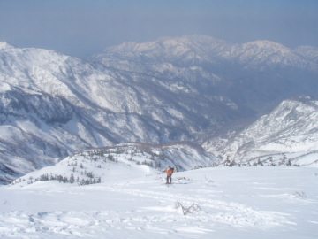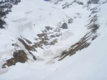 | 別当谷に滑るこむわたし | 別当谷を滑るだるる |