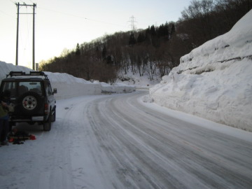 | 悪雪でへろへろ | 状態の悪い谷状をひとりづつ滑る |