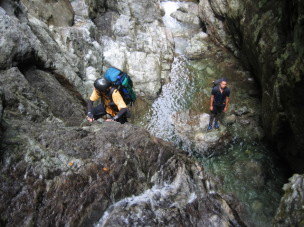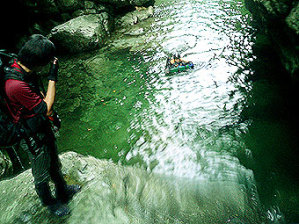 | ゴルジュ泳ぎ中 | シャワークライム中 |