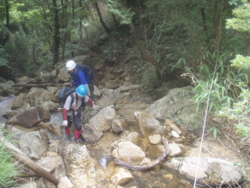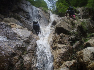 | 土砂の堆積を越えていく | 12m滝は右のルンゼから巻いた |